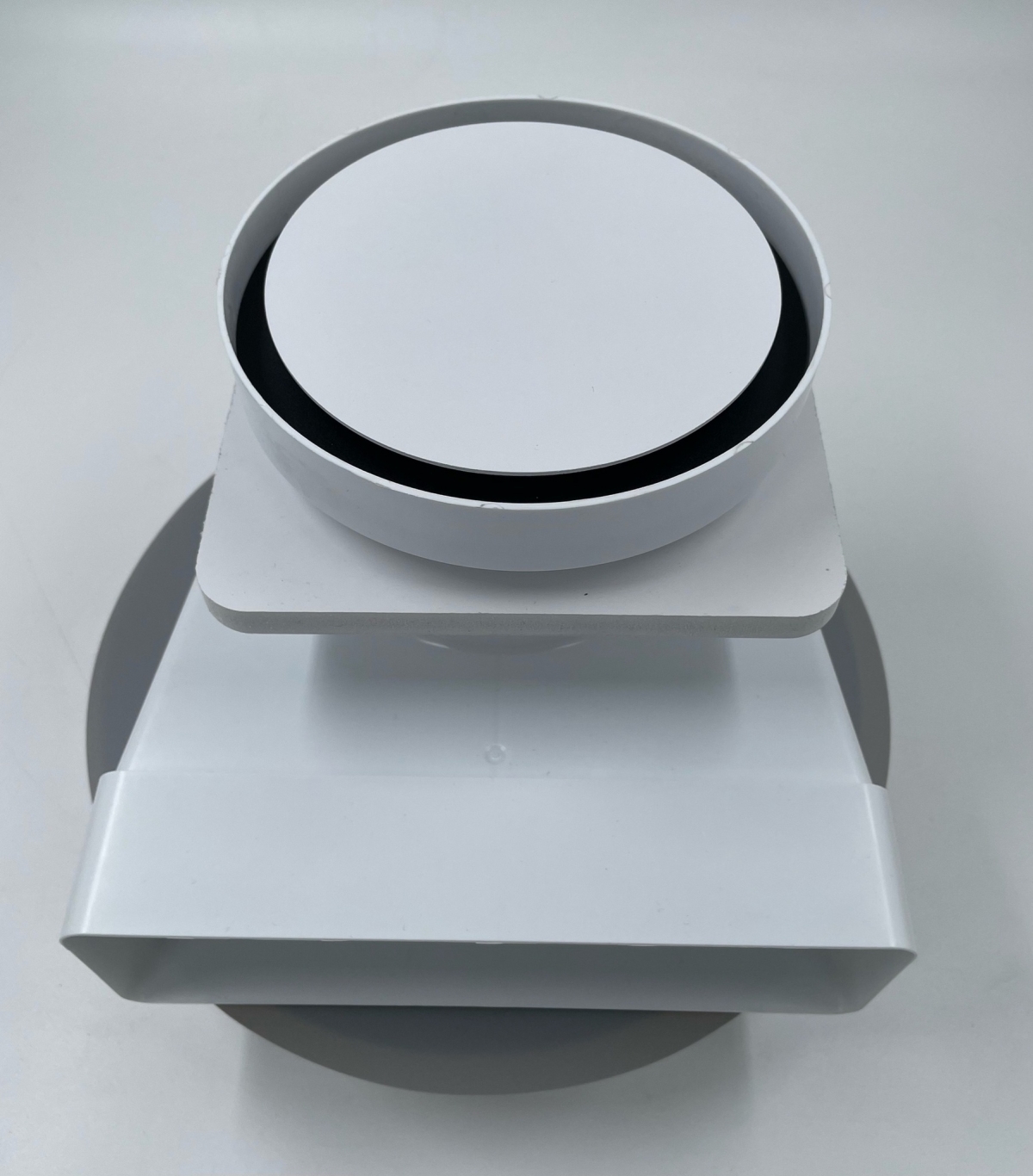 Теневой диффузор для натяжного потолка FoZa FoZa d150мм с вентилятором на шарикоподшипнике d100мм с выходом на трубу 60х204мм